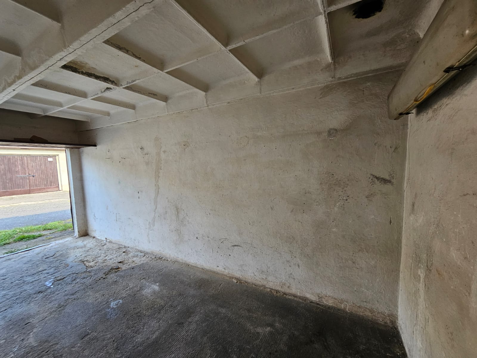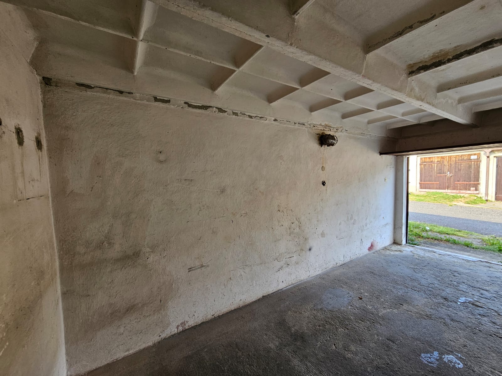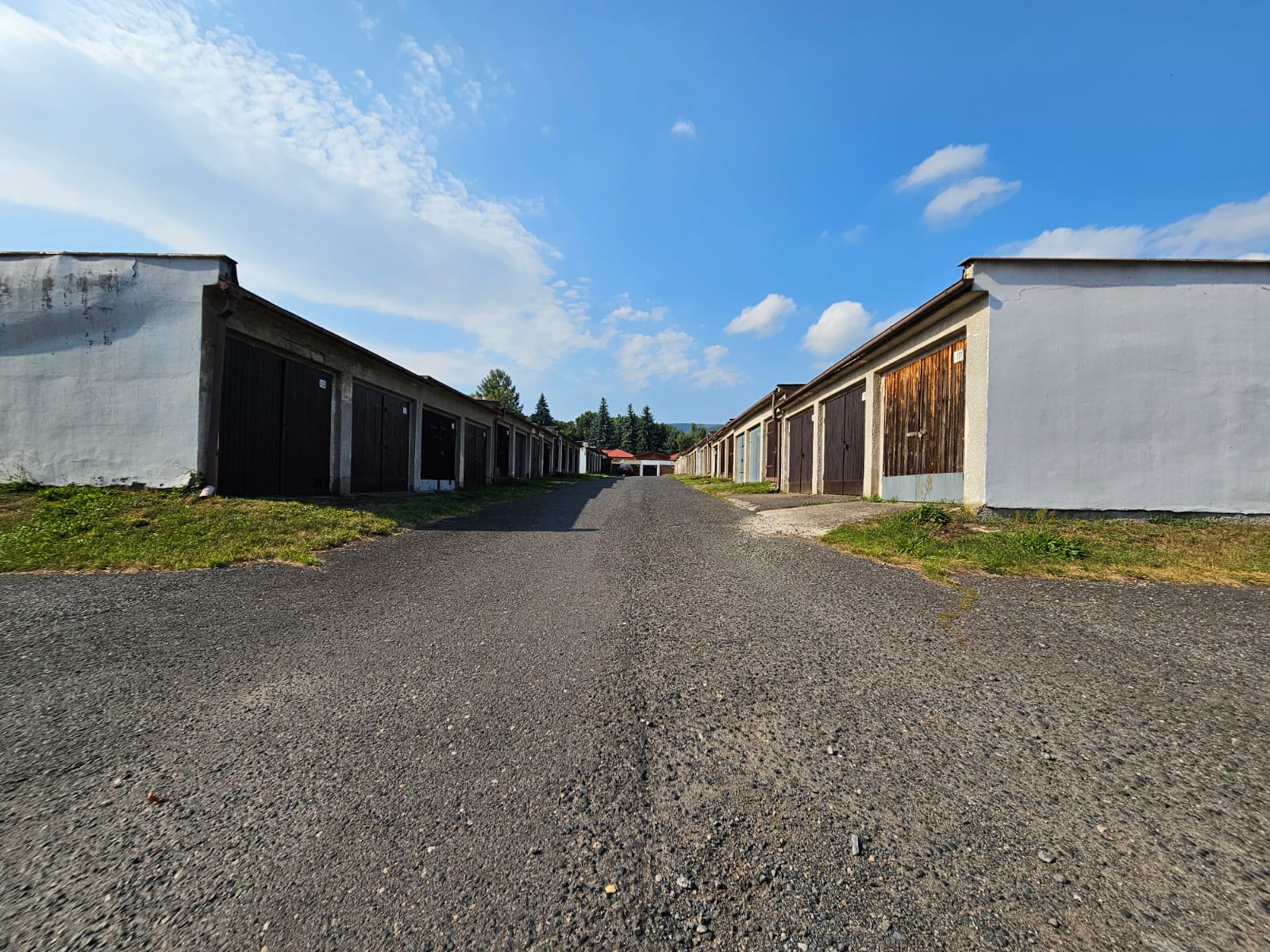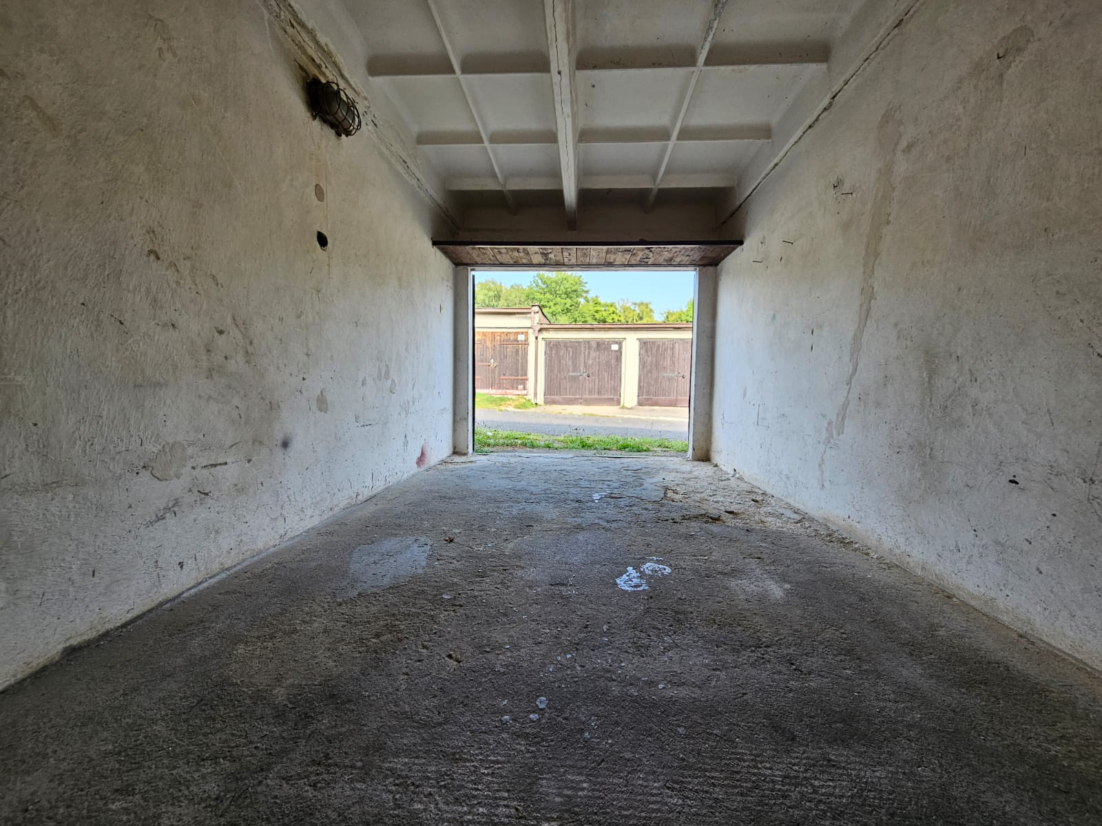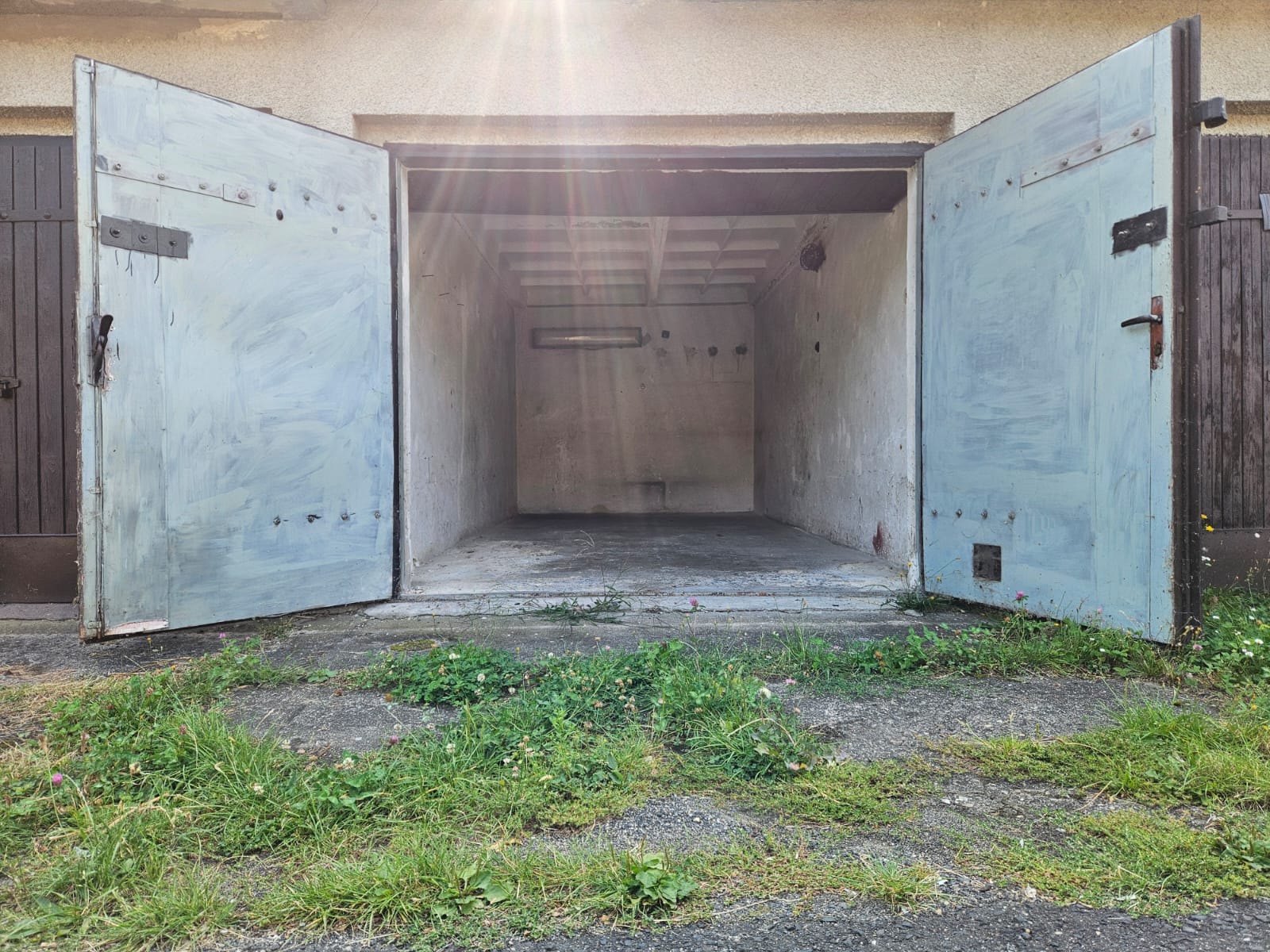 Do garáže je přivedena elektřina (je potřeba jen připojit hodiny), vrata osazeny 3mi zámky. Nachází se u vjezdu do areálu.