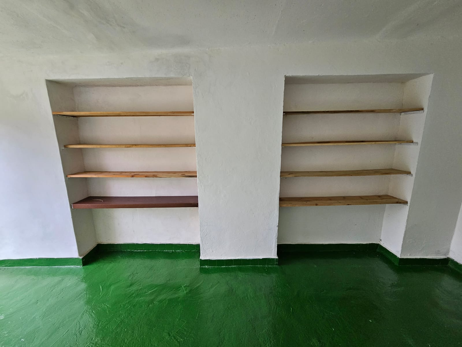 Garáž je suchá, vymalovaná a má upravenou podlahu. Nyní je garáž bez proudu, po opětovném připojení hodin je elektřina opět funkční.